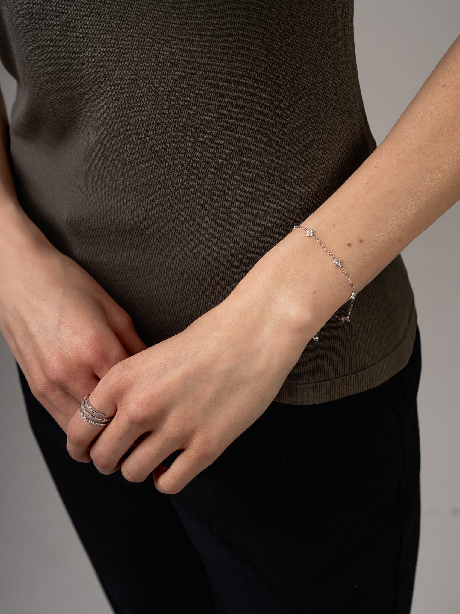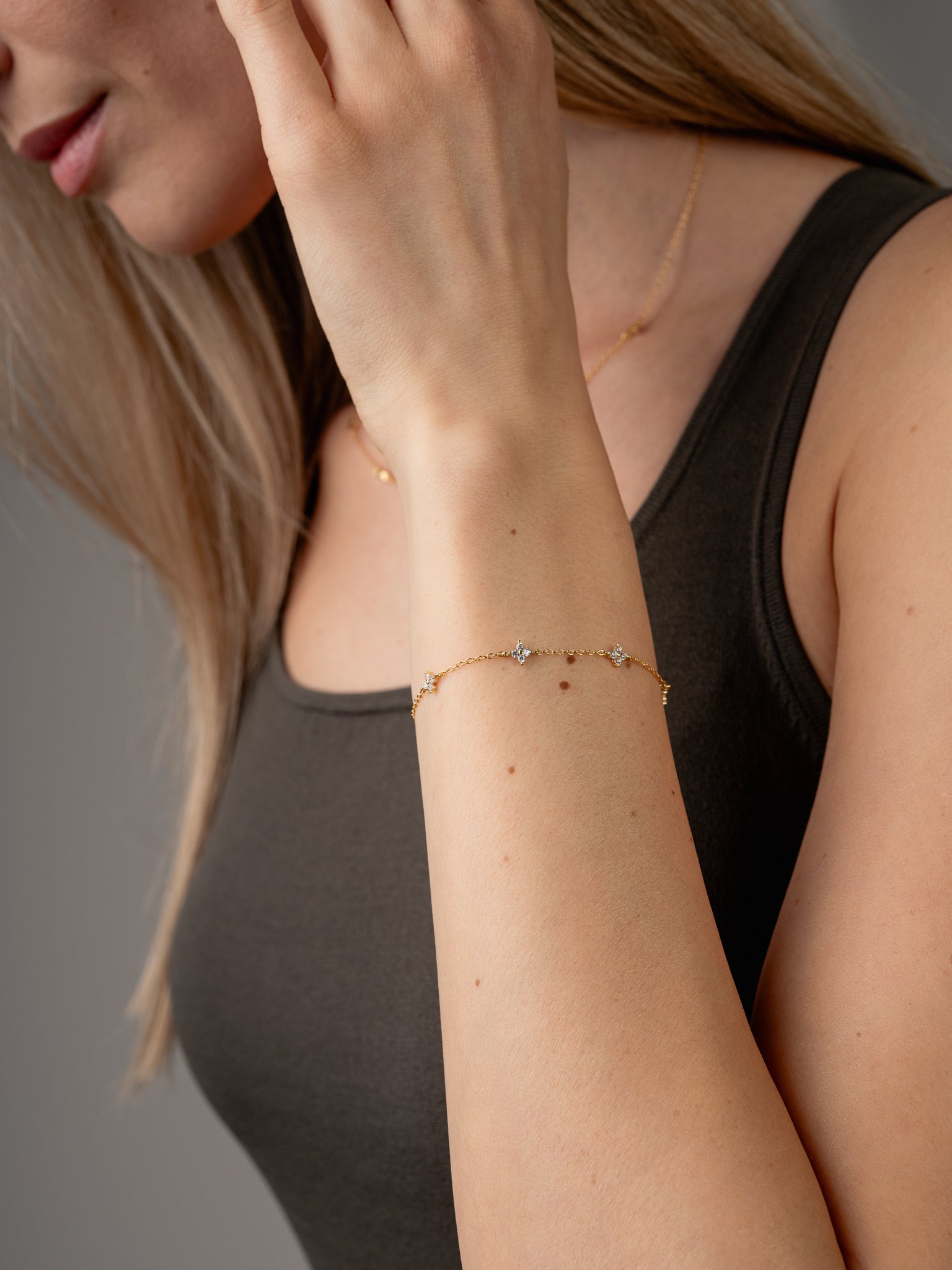 A dainty flower bracelet perfect for layering with other bracelets or as a stand-alone piece for a romantic look.