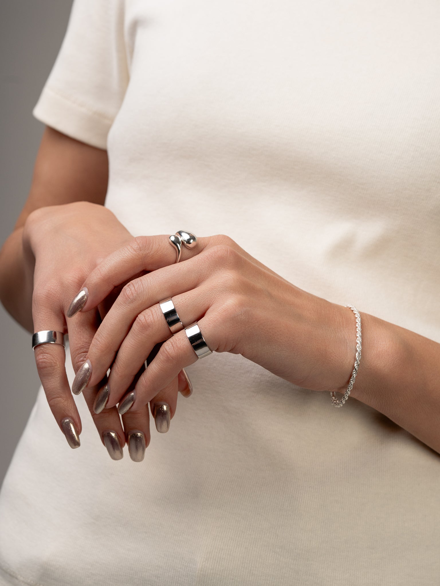 A bold and polished band loved by both men and women for its clean, modern silhouette. Available in multiple sizes, it can be worn on different fingers to create a bold and stylish stacked look.